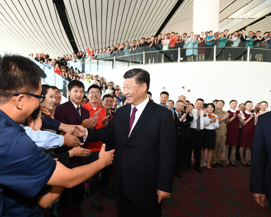 距离新中国成立70周年还有5天,习近平总书记来到距天安门广场直线距离约46公里的北京大兴国际机场。