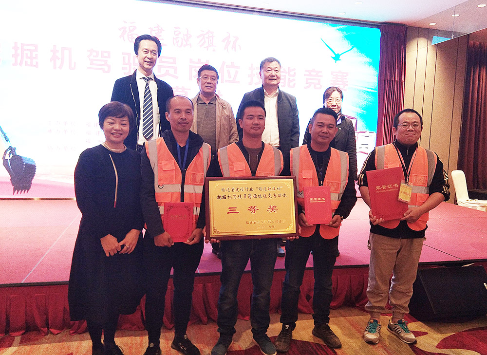 11月28日上午,2019年全省建设行业“福建融旗杯”挖掘机驾驶员岗位技能竞赛圆满落下帷幕。闭幕式上,福建省住房和城乡建设厅副厅长王胜熙、福建建设建材工会主席周华南、福州市总工会党组成员、副主席陶海华、莆田市住建局副局长刘佳静、厦门市制造业工会联合会副主席林娜珍、福州市城建工会主席田英、裁判长黄玉仁、福州市建协会长施忠旗为获奖队伍和选手颁奖。好博(中国)集团以团体奖项第三名和个人分别荣获福建省建设行业挖掘机驾驶员十大技术标兵、福建省建设行业挖掘机驾驶员优秀选手的好成绩在闭幕式上接受颁奖。