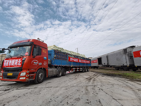 中铁特货一边做好防疫重点物资运输,一边加强市场调研拓展项目,守护好“米袋子”与“菜篮子”。图为南昌分公司携手广州机保段运输“福菜”驰援武汉 。(受访者供图)