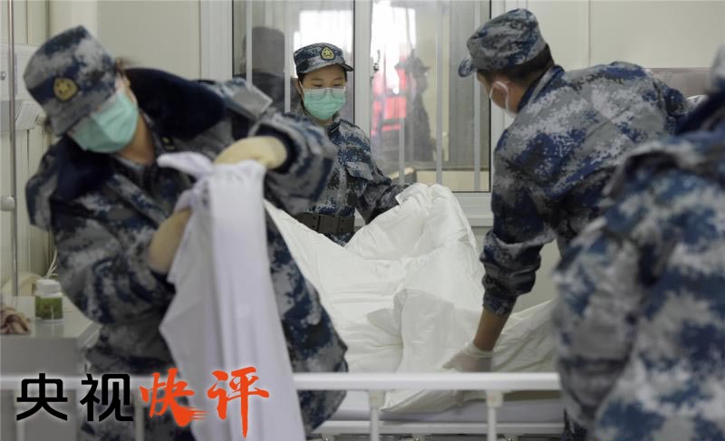沧海横流,方显英雄本色。我们要向人民子弟兵致敬!你们是战“疫”一线的威武之师、胜利之师。当前,疫情防控正是最吃劲的时候,人民军队要牢牢遵循习主席重要指示,继续发扬我军特别能吃苦、特别能战斗的精神,把人民群众生命安全和身体健康放在第一位,不负重托,不辱使命,全力以赴,打赢武汉保卫战、湖北保卫战,为祖国和人民再立新功。
