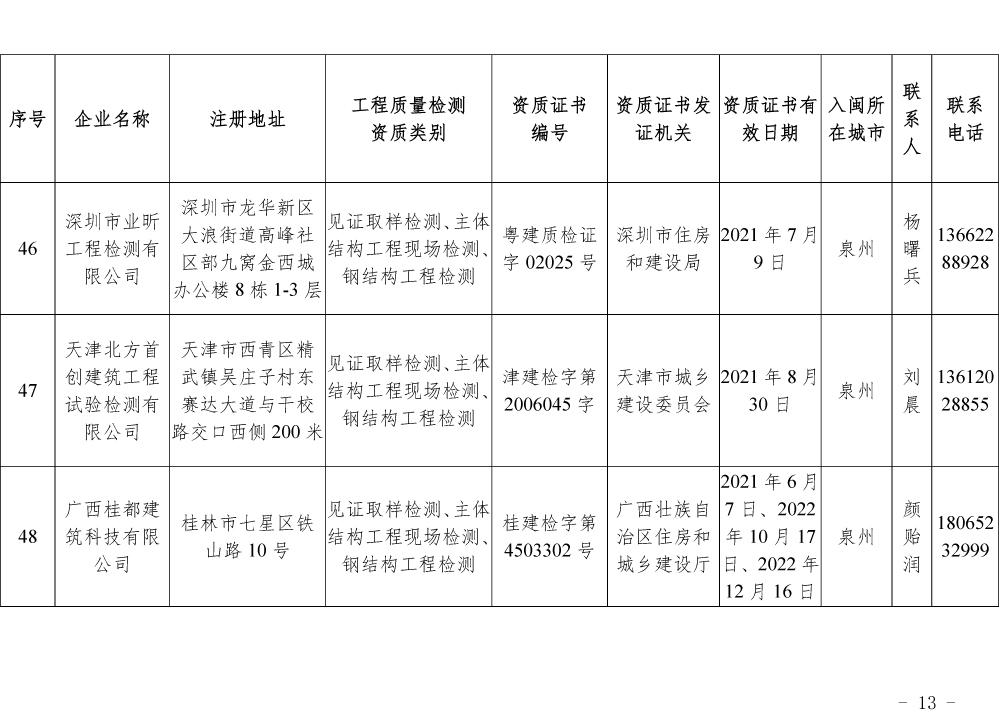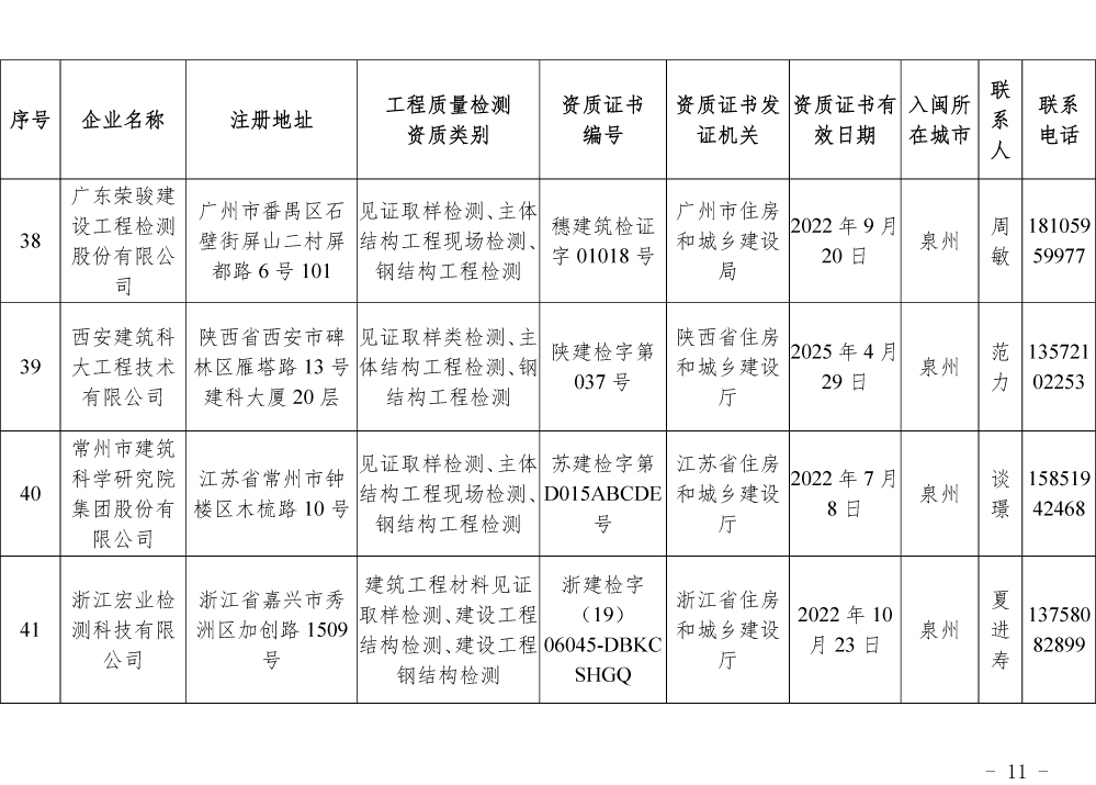 为更好的支持和服务我省房屋安全鉴定工作,截止5月底,共计74家省外建设工程质量检测机构已按照《建设工程质量检测管理办法》(住建部令第141号)有关规定,在我厅办理入闽承担检测业务备案手续,现将74家检测机构名单予以公布。