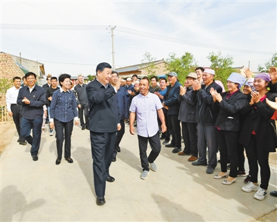 随后,习近平步行察看村容村貌。在回族村民刘克瑞家,他仔细看院落、客厅、卧室、厨房、牛棚,详细了解家庭就业、收入、看病、社保等情况。刘克瑞告诉总书记,家里的耕地流转了,还养了3头肉牛,儿子儿媳在附近纺织厂打工,2017年全家脱贫,生活越来越好,乡亲们打心底里感到党的政策好,真切感受到共产党亲。习近平询问刘克瑞老两口还有什么困难、对今后的日子有什么打算。习近平强调,乡亲们搬迁后,更好生活还在后头。希望乡亲们百尺竿头、更进一步,发挥自身积极性、主动性、创造性,用自己的双手创造更加美好的新生活。