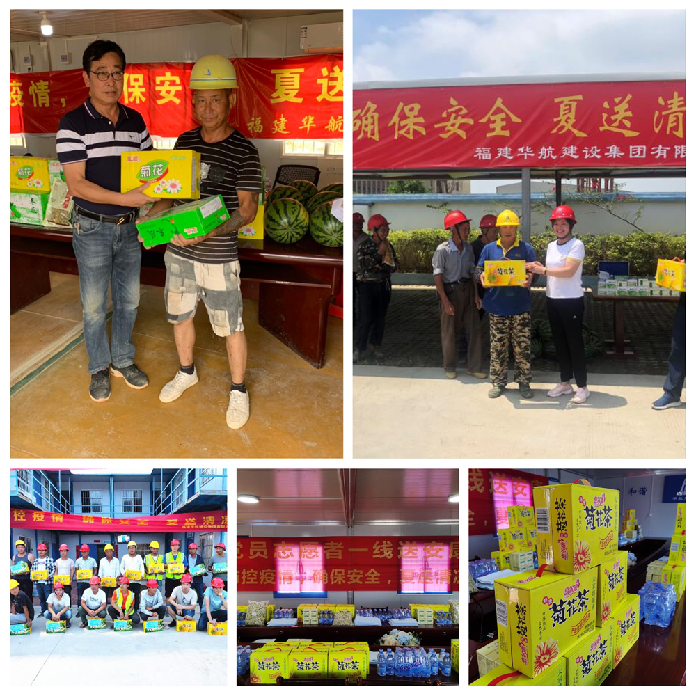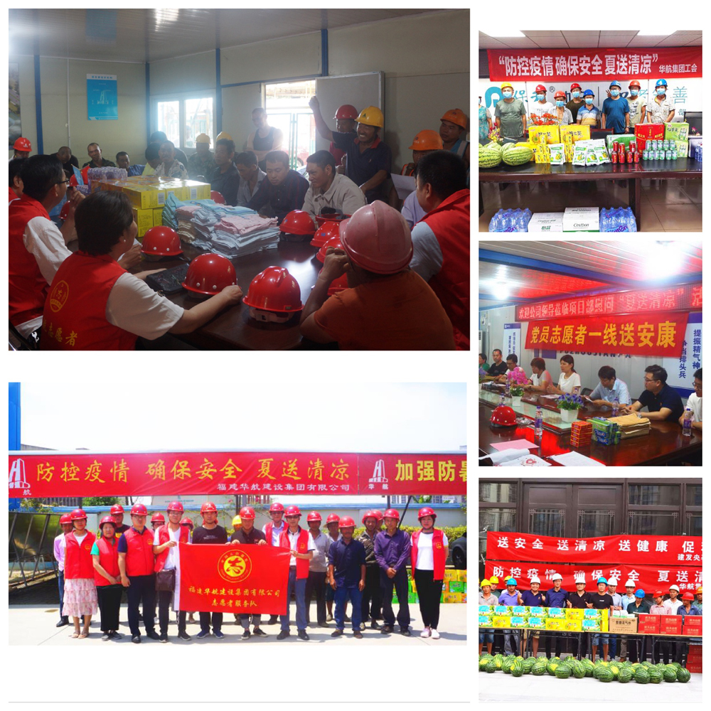 近日,为慰问高温季节仍坚守在施工一线的广大干部员工,好博(中国)集团开展“防控疫情,夏送清凉”系列活动,组织相关部门人员和党员志愿者深入各地项目部,向一线工人广泛宣传“安康杯”竞赛活动主题及内容、普及安全生产知识和防暑防疫小常识,为他们送去各种清凉解暑物品。