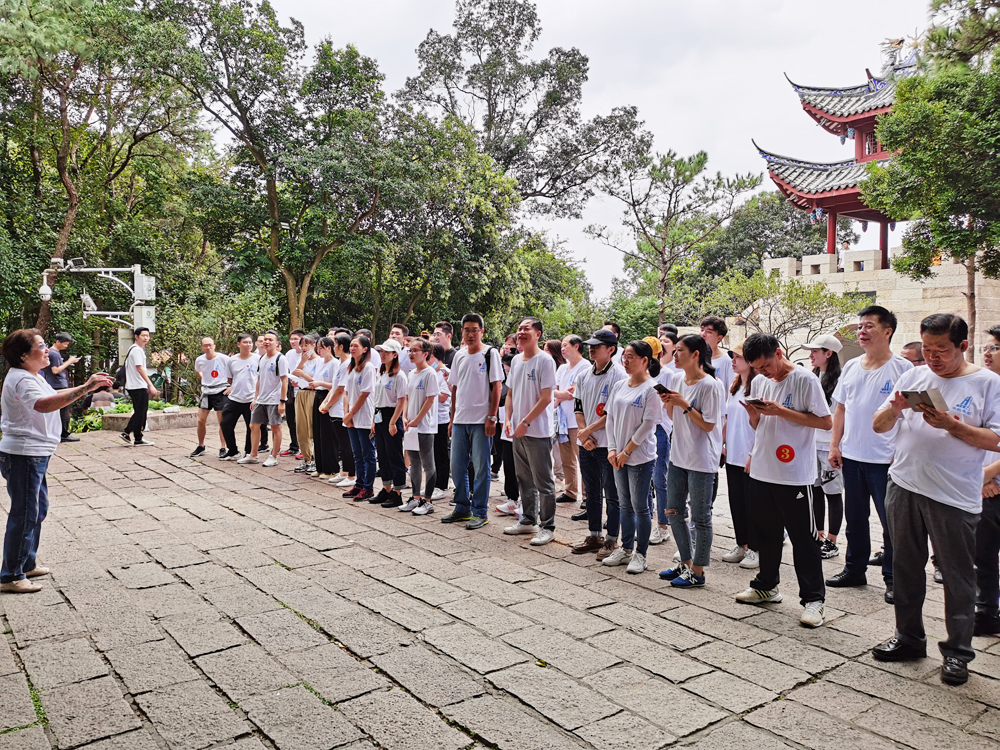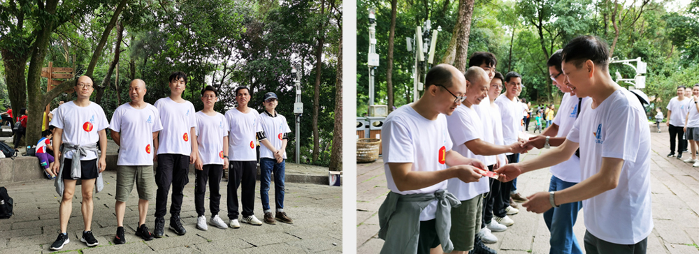 稍作休整后,以部门为单位演唱的《歌唱祖国》、《没有共产党就没有新中国》、《团结就是力量》、《我和我的祖国》等红色经典歌曲拉歌赛,又将活动推向新的高潮。大家激情满怀,“你方唱罢我登场”,嘹亮的歌声,一阵高过一阵,伴随着员工无限热爱祖国之情,回荡在鼓山之巅,充分表达了全体员工对伟大祖国的美好祝福。主题登山活动在《团结就是力量》的全员大合唱中落下帷幕。