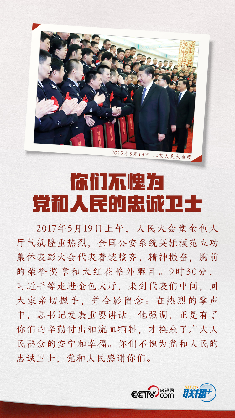 |联播+|今年1月10日是第一个“中国人民警察节”。节日来临之际,习近平总书记代表党中央,向全国人民警察致以诚挚的慰问。希望大家以实际行动践行对党忠诚、服务人民、执法公正、纪律严明,努力建设更高水平的平安中国、法治中国,为保障人民幸福、国家安全、社会稳定作出新的更大贡献,以优异成绩庆祝建党100周年。