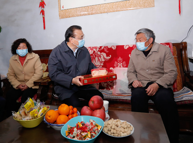 夏县庙前镇吴村是一个脱贫村。李克强走进村民家中,送上年货和祝福,围坐一起算全家收入的细账,询问家里有几亩地、几个人打工、还有什么期盼。他说,国家正在实施乡村振兴战略,会继续实行帮扶和促进政策,巩固脱贫成果,政策好、大家努力干,日子会越过越好。他勉励在外打工的村民通过勤劳奋斗为家里撑起一片天。村里孩子回答了总理关心的上学情况,一名小学生兴致勃勃给总理背诵了唐诗,李克强鼓励孩子们理解传承好中华优秀传统文化。他特别关心群众冬季取暖,听到在国家政策支持下,村里用上了生物质炉,把当地较多的修剪下来的果树枝、秸秆颗粒等做燃料,解决了做饭、取暖问题,李克强予以肯定。他强调,冬季取暖要宜煤则煤、宜气则气、因地制宜,为群众办事就是要立足实际、多动脑筋,让群众更方便。