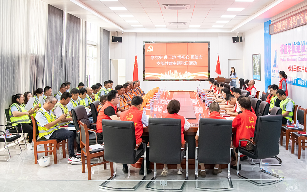 上午,身穿红背心、佩戴党徽的党员志愿者与统一着装的一线工人、项目管理人员精神饱满准时到达现场。“主题活动”在雄壮的中华人民共和国国歌声中拉开序幕。接着,全体人员一起认真学习了习总书记在“七一”勋章颁授仪式上的讲话等有关文件,观看了中央网信办网络局录制的《路》和中央电视台10频道“百家讲坛”录制的《红船精神》等视频,听取了各支部党员志愿者代表围绕中华民族从“站起来、富起来、强起来”的三个历史性飞跃,源于中国共产党领导为主要内容,进行了解说与交流。他们从不同角度,通过讲述中国共产党百年奋斗史的艰辛与辉煌、中国共产党领导中国人民以“为有牺牲多壮志,敢叫日月换新天”的大无畏气概所取得各个阶段伟大胜利的历程,共同深刻领会到,一部党的百年史就是一部历史和人民选择党领导中华民族伟大复兴的千秋伟业史。中华民族能从一个胜利不断走向新的胜利,实现从站起来、富起来到强起来的伟大飞跃,无数铁的事实证明,中国共产党始终是中国革命、建设和改革不断取得胜利的引领者,是实现中华民族伟大复兴的中流砥柱。没有中国共产党,就没有新中国,就没有中国特色社会主义,中华民族复兴伟业就不可能实现。大家一致表示,要积极发扬“红船”的开天辟地、敢为人先的首创精神,坚定理想、百折不挠的奋斗精神,立党为公、忠诚为民的奉献精神,坚决响应党中央号召,牢记初心使命,坚定理想信念,践行党的宗旨,永远保持同人民群众的血肉联系,始终同人民想在一起、干在一起,风雨同舟、同甘共苦,继续为实现人民对美好生活的向往不懈努力,努力为党和人民争取更大光荣。