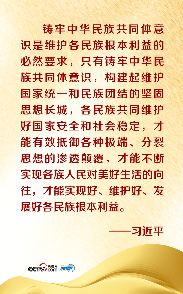 铸牢中华民族共同体意识是维护各民族根本利益的必然要求,只有铸牢中华民族共同体意识,构建起维护国家统一和民族团结的坚固思想长城,各民族共同维护好国家安全和社会稳定,才能有效抵御各种极端、分裂思想的渗透颠覆,才能不断实现各族人民对美好生活的向往,才能实现好、维护好、发展好各民族根本利益。