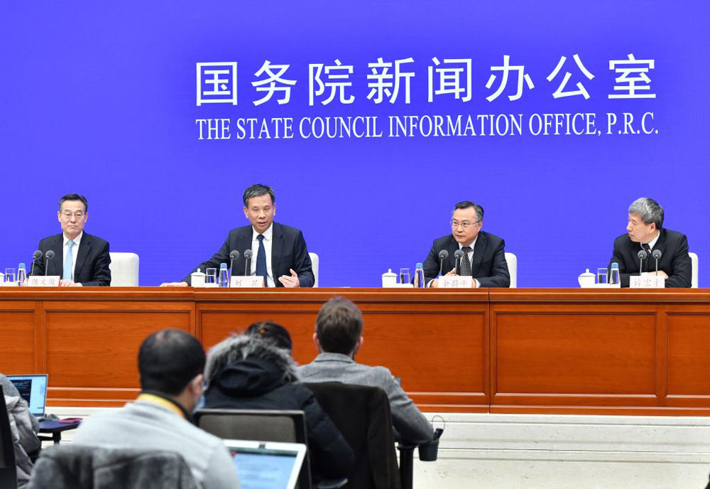 2022年2月22日,国务院新闻办公室举行新闻发布会,请财政部部长刘昆、财政部副部长余蔚平、财政部副部长许宏才介绍财政改革与发展工作,并答记者问。新华社记者 李鑫 摄