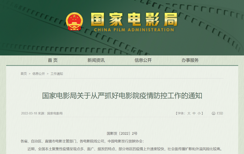 国家电影局关于从严抓好电影院疫情防控工作的通知