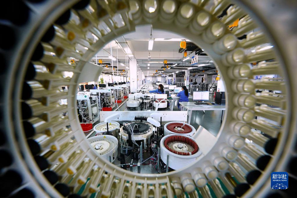 河北省迁安市一家生物科技企业的员工在生产线上工作(2021年12月26日摄)。 新华社记者 牟宇 摄