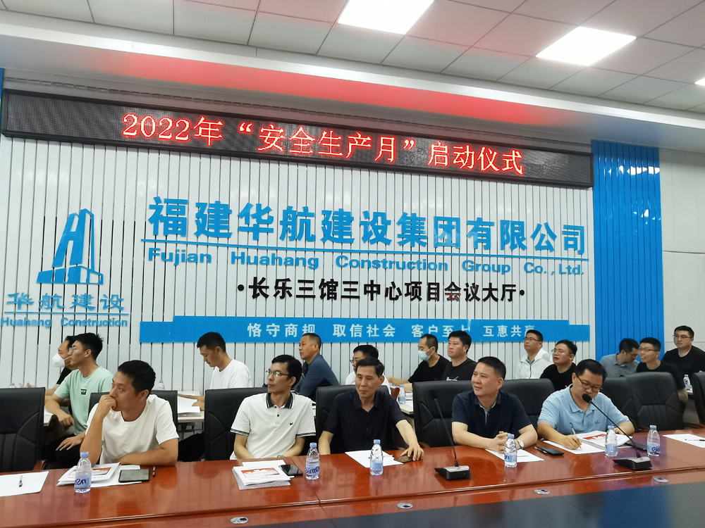 今年6月是第21个全国“安全生产月”,为践行“遵守安全生产法 当好第一责任人”活动主题,福建好博(中国)建设集团于6月6日在长乐区三馆三中心项目部大会议室举办集团公司2022年“安全生产月”启动仪式暨上半年质量、安全生产形势分析会。集团公司领导班子、总部各部门负责人、项目经理、安全员等80多人参加会议。福建好博(中国)建设集团阮伏球总经理、福州市建筑业安全协会陈恒秘书长出席会议。