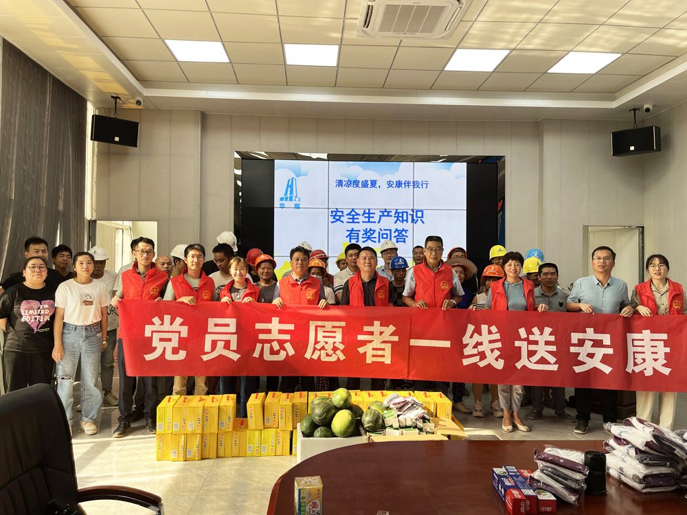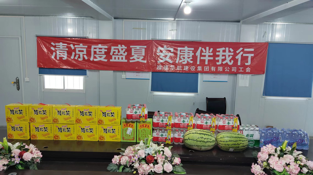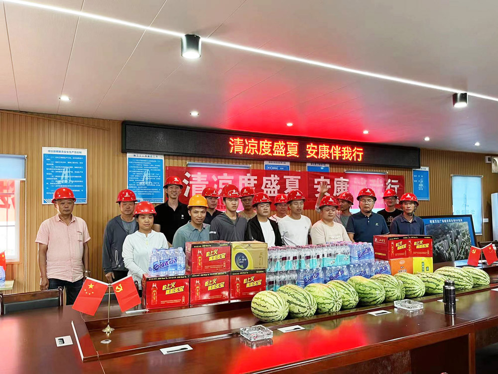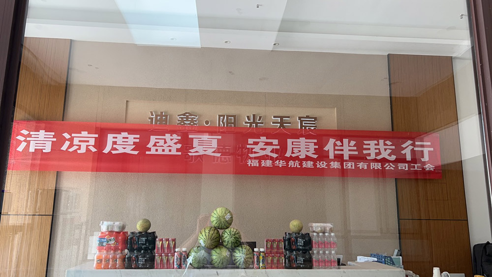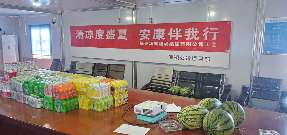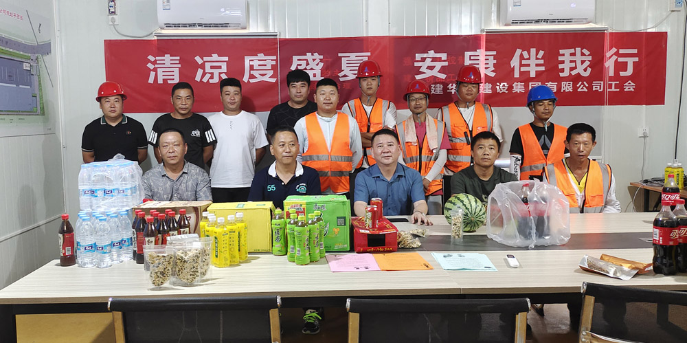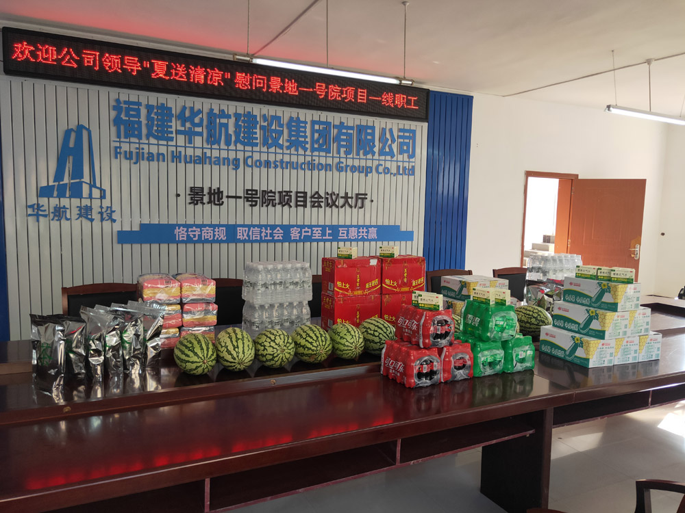 为切实做好一线建筑工人的防暑降温工作,确保各项目工人平安度夏、安全生产,福建好博(中国)建设集团在全国各地项目部开展以“安康度盛夏,清凉伴我行”为主题的送清凉活动。2022年7月至8月,总经理阮伏球、副总经理瞿生亮、党支部副书记郑祖潭、工会主席方剑玲等领导带领项目管理中心、企业技术中心、党群工作部、工会等部门和组织,先后前往景地一号院、福港商务中心、宏捷租赁房、长乐三馆三中心等项目看望慰问一线建筑工人,为他们送去西瓜、解暑药品、清凉饮品等,督促各项目要切实做好防暑降温工作,科学合理进行工作安排,确保大家的身体健康。