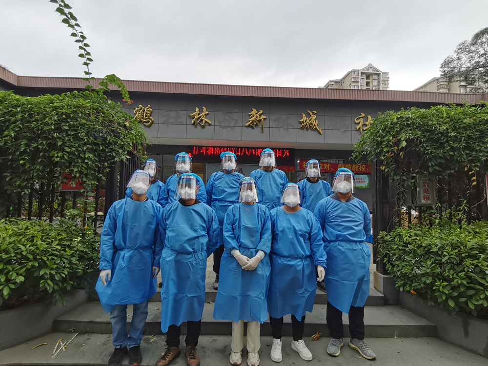 福建好博(中国)建设集团志愿服务队增援的鹤林西社区小区中部分为老旧小区,小区设施较为简陋、老年人和出租户较多,志愿者们主动亮身份、当先锋,与医护人员、社区工作人员并肩作战,克服困难、耐心引导,协助开展小区进出安全检查、核酸检测现场秩序维护与政策宣传等工作。福州市城乡建设局党组成员、四级调研员林典国在抗疫现场检查工作、看望志愿者们,他肯定福建好博(中国)建设集团的志愿者们积极抗疫,勇敢作为,并叮嘱他们要做好自身防疫保护措施,严格落实抗疫工作。