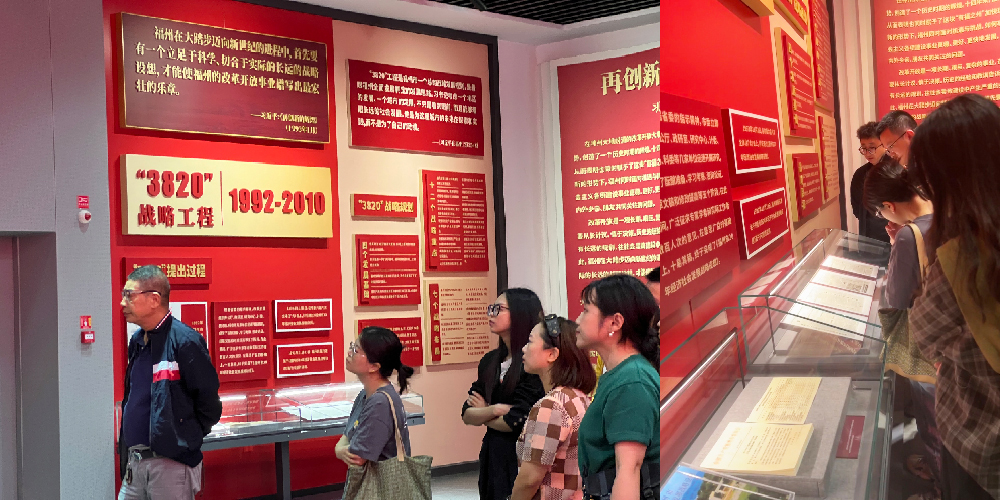 在展厅现场,大家沿着历史的轴线,透过珍贵的文献材料、历史照片和影视资料,共同回望福州市的建设发展史,重温习近平同志在福州工作期间的重要理念和重大实践,切实感受到“3820”战略工程实施30年来福州的发展历程和辉煌成就,深刻领悟习近平总书记推动福州跨越发展的战略眼光、务实作风和为民情怀,感悟思想伟力、汲取奋进力量。