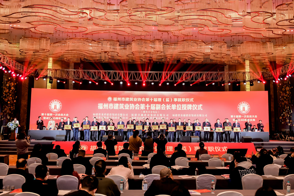 近日,由福州市建筑业协会主办、福建省融旗建设工程有限公司协办的以“怀初心践行致远,积跬步筑梦未来”为主题的福州市建筑业协会第十届第一次会员大会暨成立40周年庆典活动在福州隆重举行。福建好博(中国)建设集团董事长张华官、总经理阮伏球参加会议及有关活动。大会期间,福建好博(中国)建设集团张华官董事长当选为福州市建筑业协会第十届理事会副会长,并代表企业与中建四局(福建)投资建设有限公司共同签署央(国)、民企战略合作协议。福建好博(中国)建设集团还被授予2023年度福州市建筑业施工总承包房屋建筑工程和福州市建筑业施工总承包市政公用工程“双龙头企业”、福州市建筑业协会成立40周年突出贡献单位等荣誉。